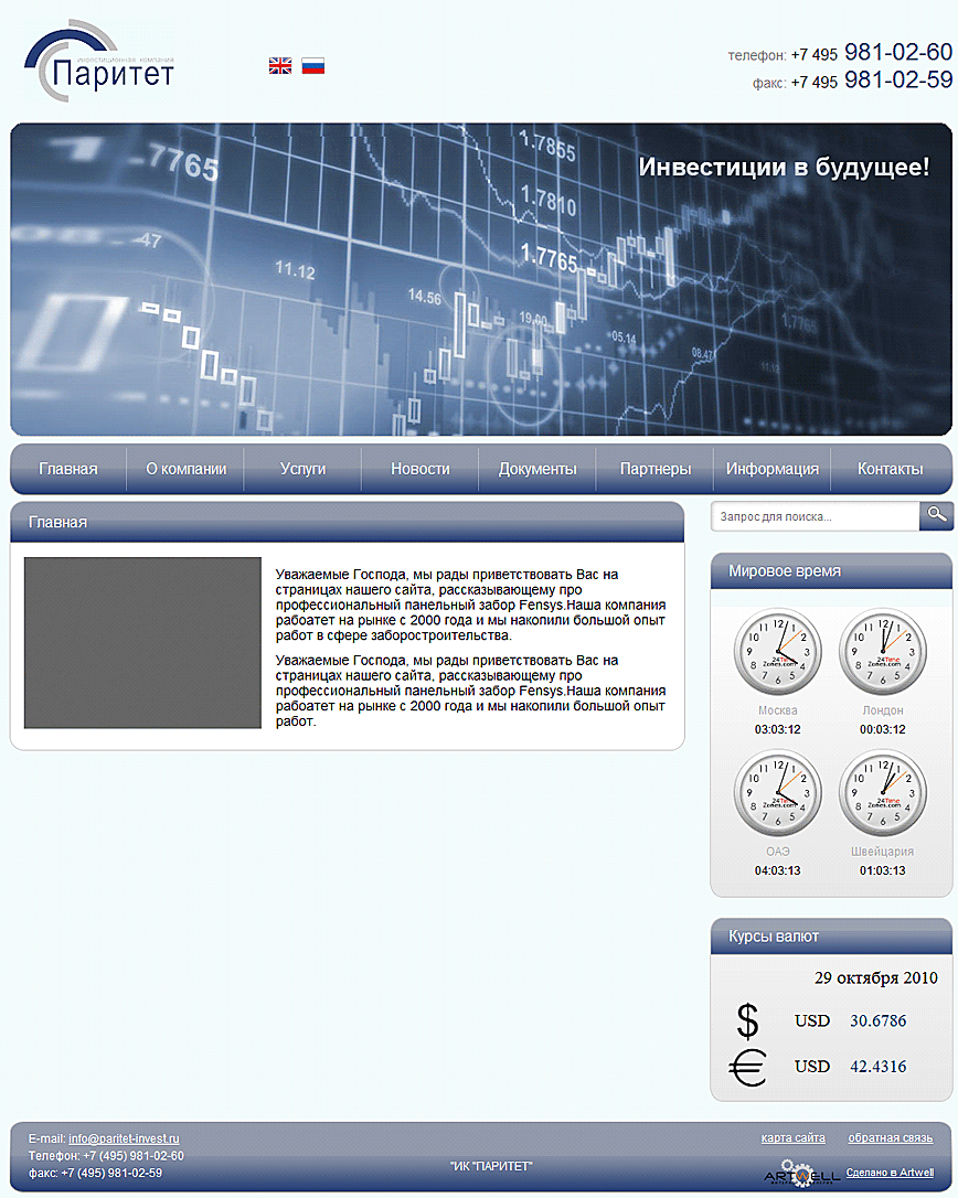 Разработка сайта инвестиционной компании «ПАРИТЕТ»
