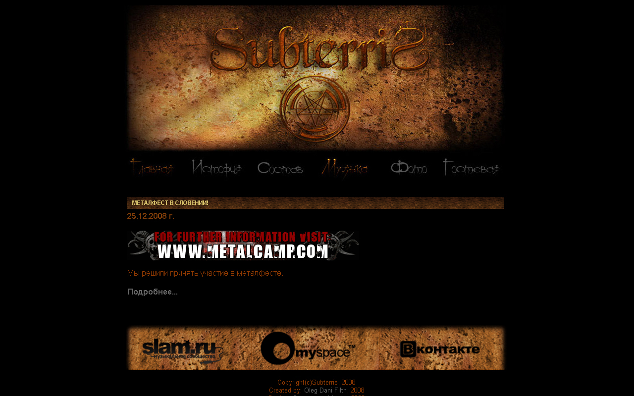 сайт группы Subterris