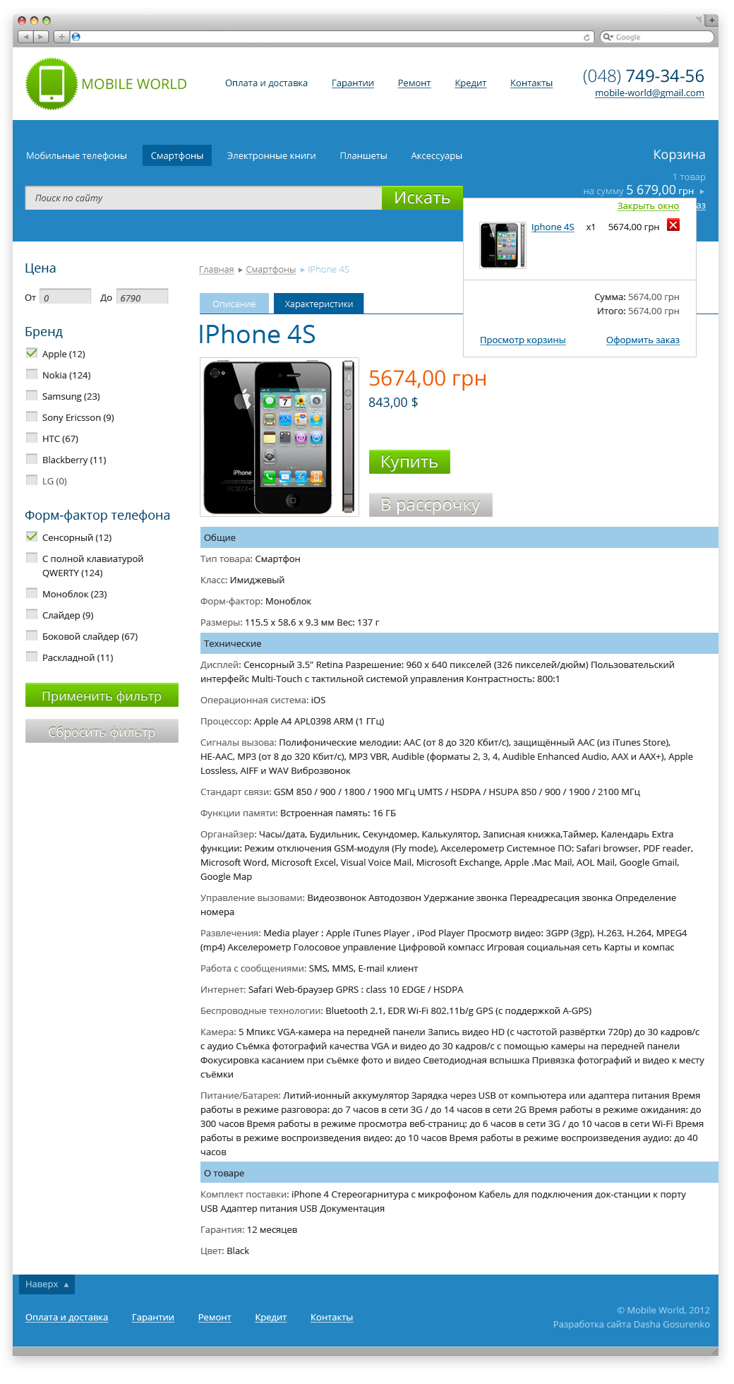 Дизайн сайта интернет-магазина, продающего мобильные телефоны.