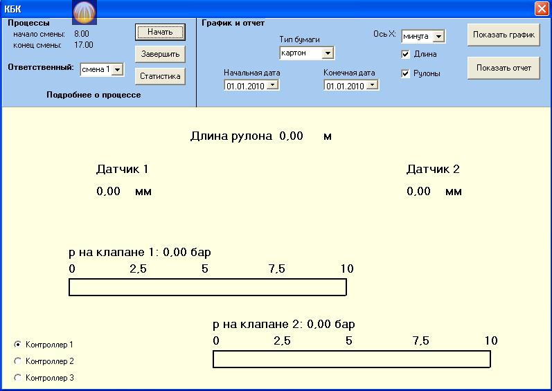 считываение данных с контроллеров по протоколу MODbus, генерация отчетов, графиков, визуализация процесса намотки рулона