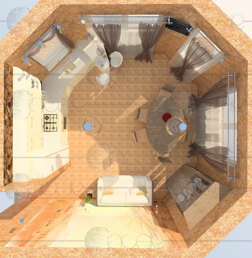 Визуализация кухни-столовой (вид сверху)