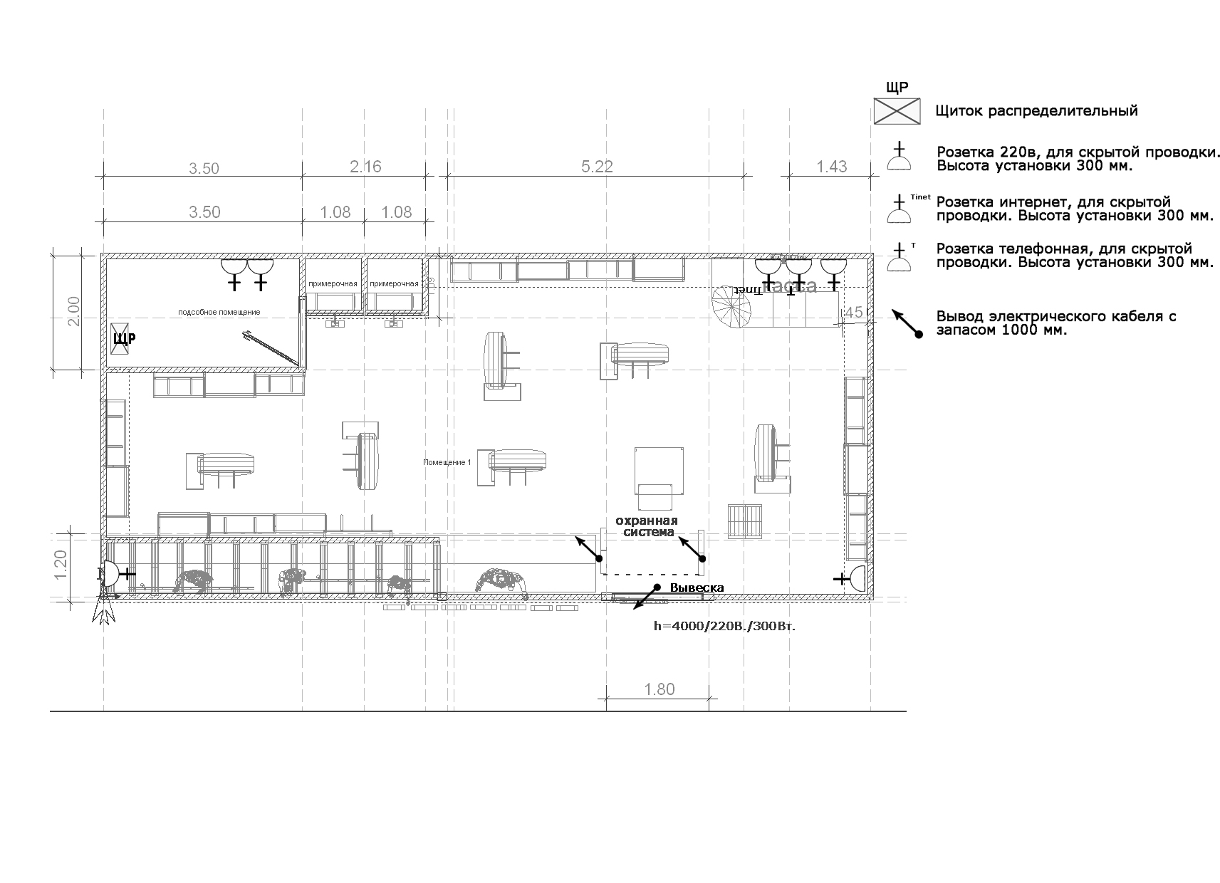 Планировка, расстановка оборудования, схема по электрике и освещению.