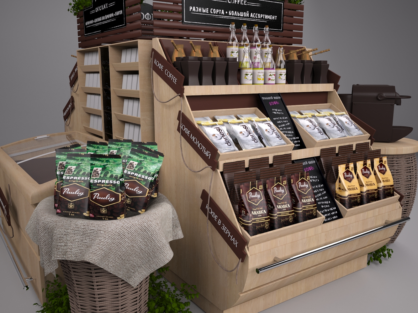 Описание: Многофункциональный остров (витрина закрытая, открытая, тестер-зоны, витрина-холодильник), предназначенный под выкладку товара, в зависимости от акций. (Зонирование задано клиентом). Прорисовка минимальная, т.к. это эскиз/набросок, сроки были короткие (1 день)