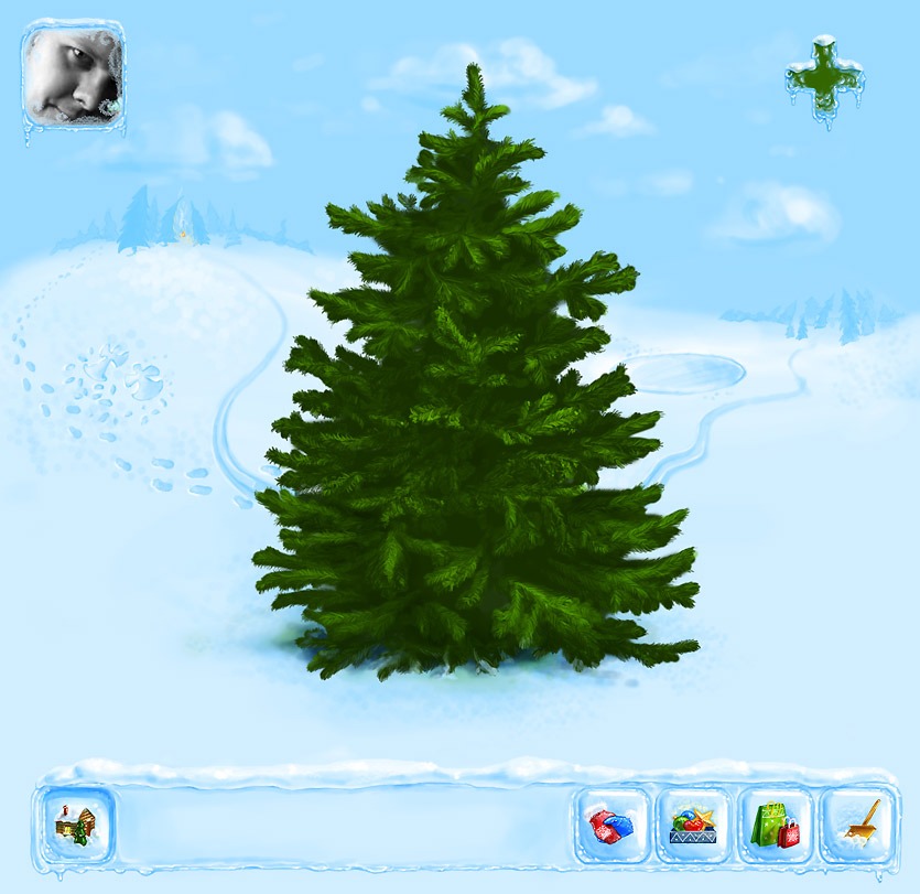 Фон, меню и елочка для флэш-игры в наряжание елки с поздравлениями