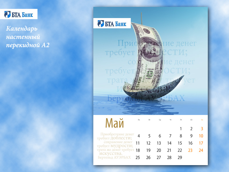 Календарь А2 формата. Печать 5 красок + текст по изображению выборочным УФ-лаком.