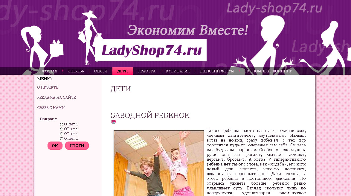 макет сайта для женского портала