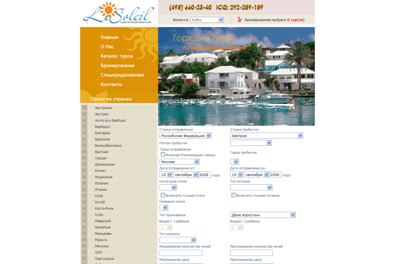 Сайт туристического агентства