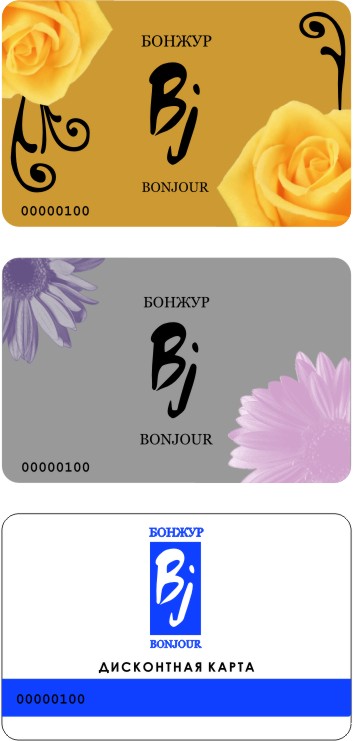 Дизайн и верстка дисконтных карт для школы-студии "Бонжур"