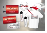 разработка фирменных материалов: визитка, световой короб, футболка, бейсболка, зажигалка