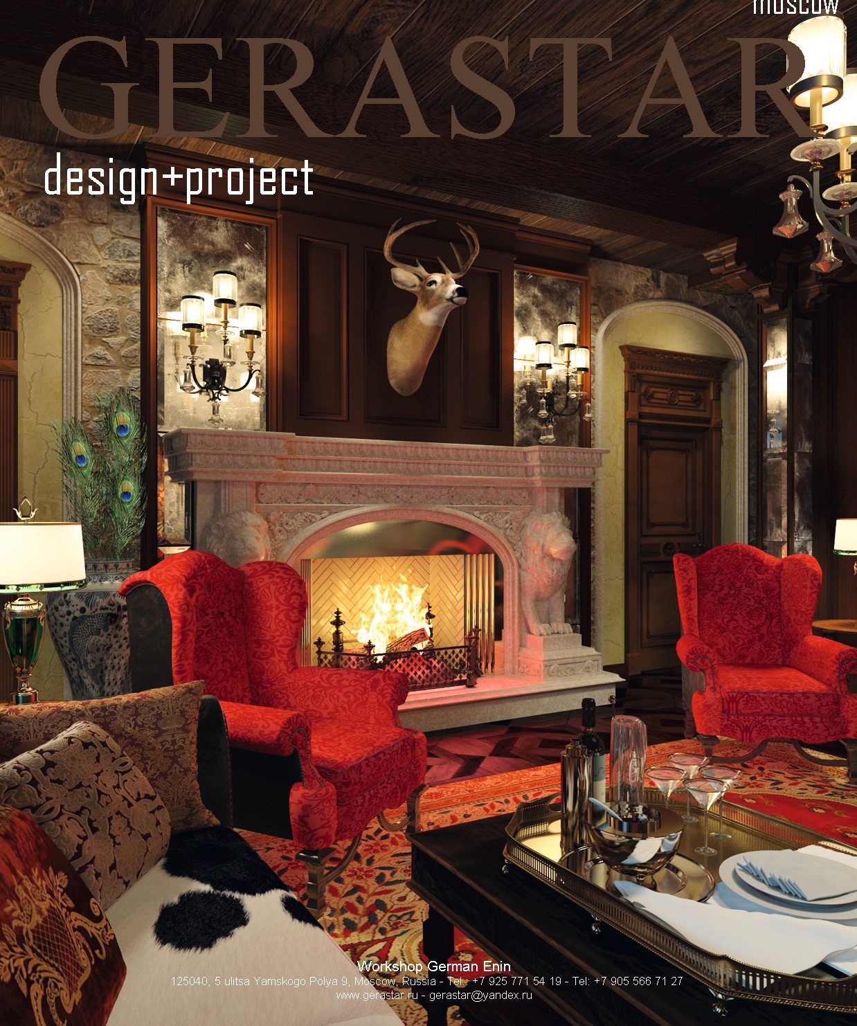Проект гостиной с камином, дизайнер Енин Герман